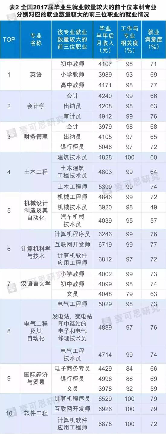 那么2017屆就業(yè)數(shù)量較大的十個(gè)本科專(zhuān)業(yè)的畢業(yè)生的職業(yè)選擇會(huì)是怎樣的?對(duì)應(yīng)職業(yè)的就業(yè)質(zhì)量如何呢?