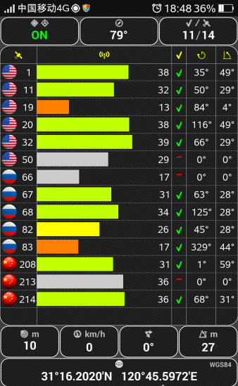 圖中顯示手機已經(jīng)搜索到北斗衛(wèi)星
