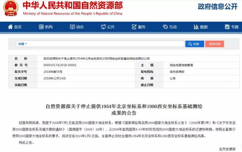 自然資源部關(guān)于停止提供1954年北京坐標(biāo)系和1980西安坐標(biāo)系基礎(chǔ)測繪成果的公告